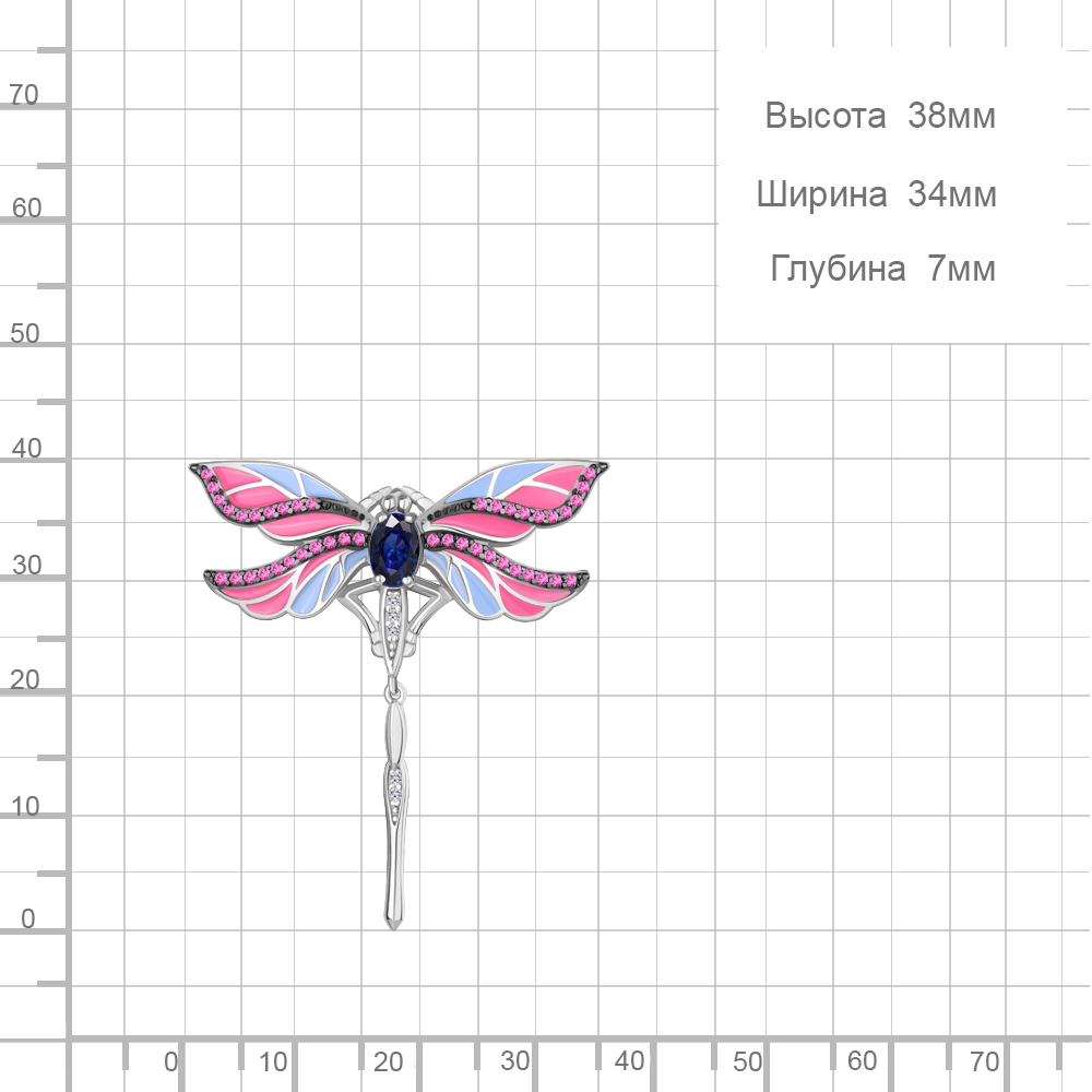 Брошь Аквамарин - Серебро 925, Синтетический рубин, Синтетический сапфир , Фианит, Эмаль (арт. 77473АБВ.5)
