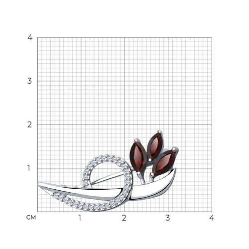 Брошь Diamant - Серебро 925, Гранат, Фианит (арт. 94-340-00702-1)