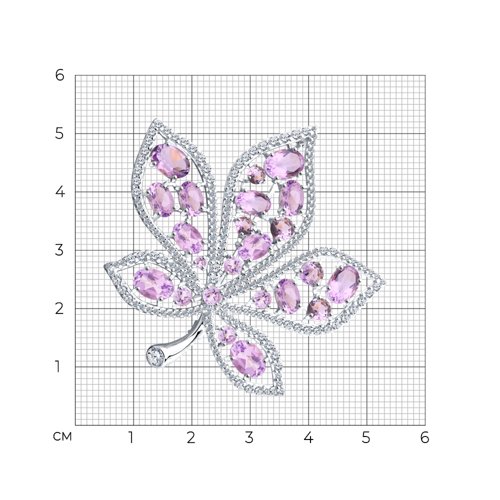 Брошь SOKOLOV - Серебро 925, Аметист, Фианит (арт. 92040101)