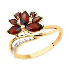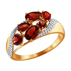 Кольцо SOKOLOV - Золото 585, Гранат, Фианит (арт. 714475)