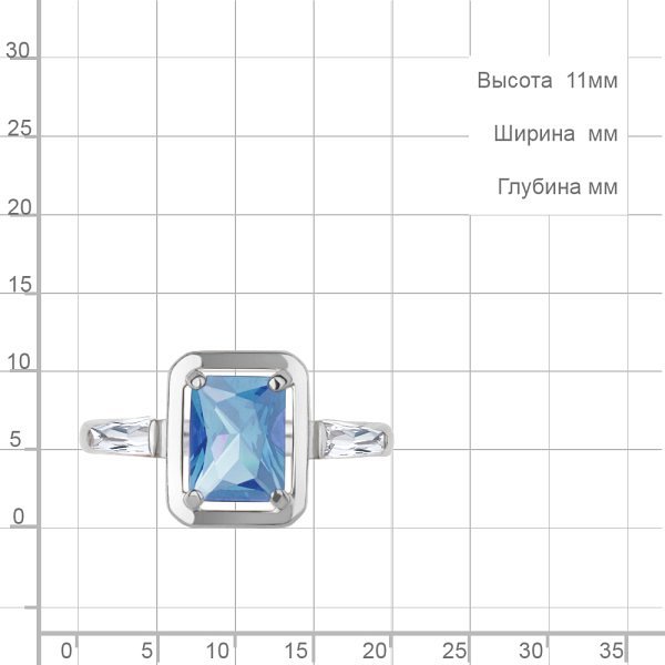 Кольцо Аквамарин - Серебро 925, Синтетический топаз, Фианит (арт. 65020992.5)