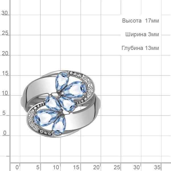 Кольцо Аквамарин - Серебро 925, Топаз, Фианит (арт. 65023205А.5)