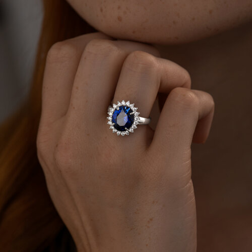 Кольцо SOKOLOV - Серебро 925, Синтетический сапфир , Фианит (арт. 88010061)