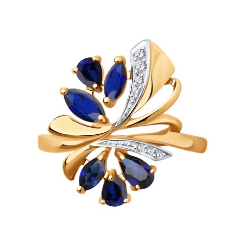 Кольцо SOKOLOV - Золото 375, Синтетический сапфир , Фианит (арт. 37714739)