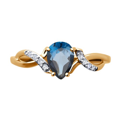 Кольцо SOKOLOV - Золото 375, Топаз лондон, Фианит (арт. 37716749)
