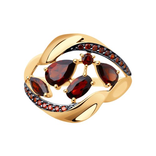 Кольцо SOKOLOV - Золото 585, Гранат, Фианит (арт. 714475)