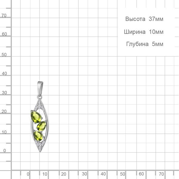 Подвеска Аквамарин - Серебро 925, Фианит, Хризолит (арт. 2541007А.5)