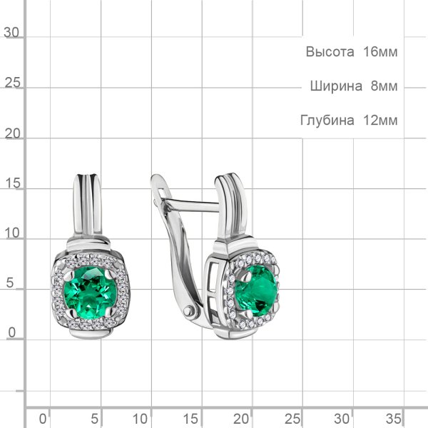 Серьги Аквамарин - Серебро 925, Синтетический изумруд, Фианит (арт. 43422Г.5)