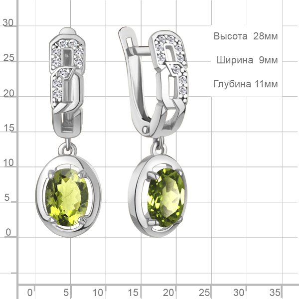 Серьги Аквамарин - Серебро 925, Фианит, Хризолит (арт. 45012907А.5)