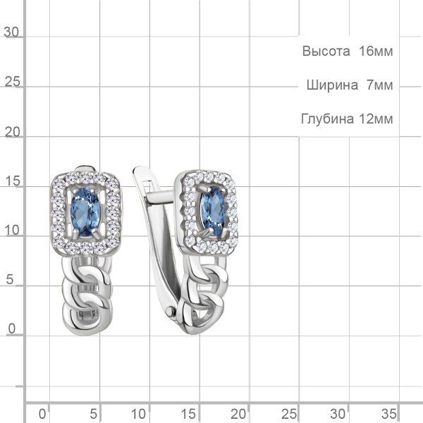 Серьги Аквамарин - Серебро 925, Топаз, Фианит (арт. 45013605А.5)