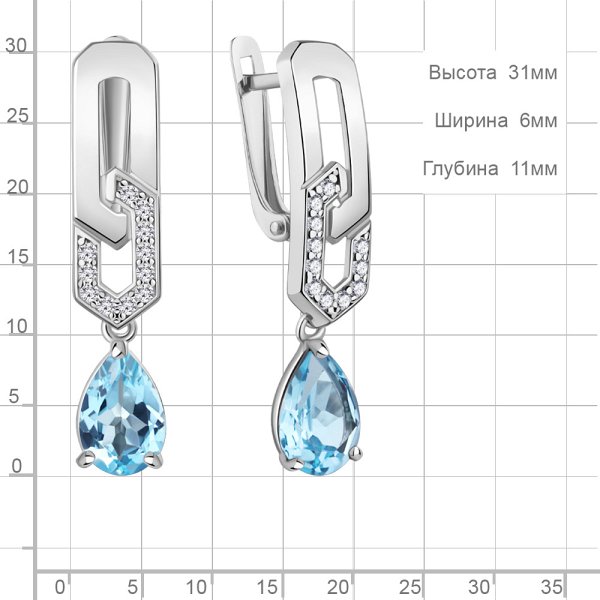Серьги Аквамарин - Серебро 925, Топаз, Фианит (арт. 45016405А.5)
