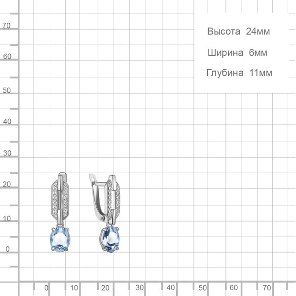 Серьги Аквамарин - Серебро 925, Топаз, Фианит (арт. 45017005А.5)