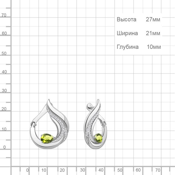 Серьги Аквамарин - Серебро 925, Фианит, Хризолит (арт. 45018507А.5)