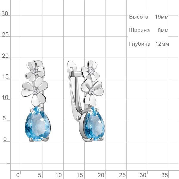 Серьги Аквамарин - Серебро 925, Топаз, Фианит (арт. 4764905А.5)