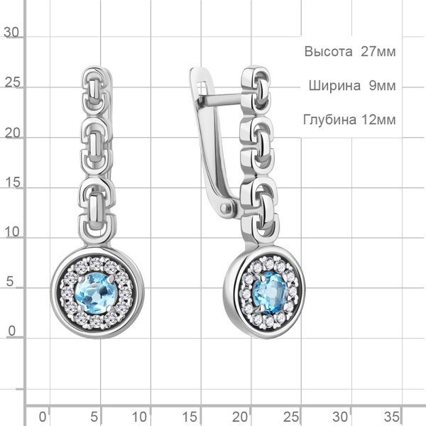 Серьги Аквамарин - Серебро 925, Топаз, Фианит (арт. 4788905А.5)