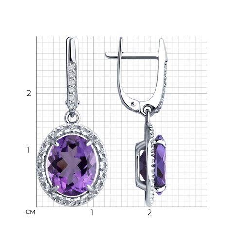 Серьги Diamant - Серебро 925, Аметист, Фианит (арт. 94-321-02647-2)