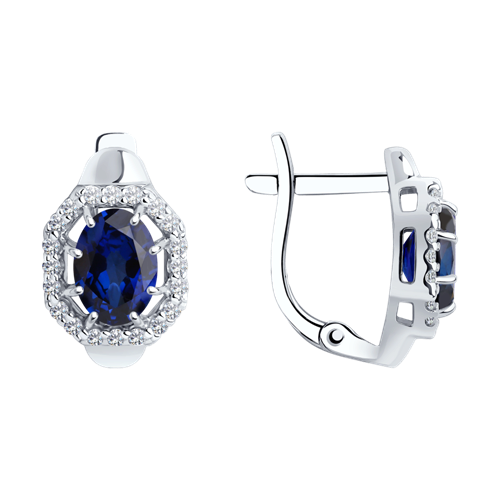 Серьги SOKOLOV - Серебро 925, Синтетический сапфир , Фианит (арт. 88020014)
