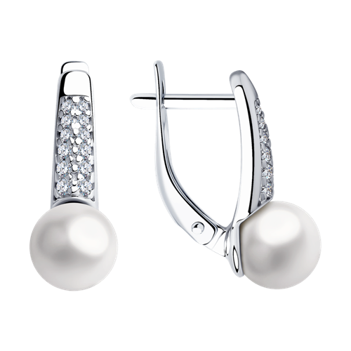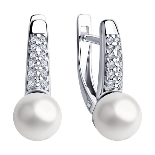 Серьги SOKOLOV - Серебро 925, Жемчуг имитация, Фианит (арт. 94023485)
