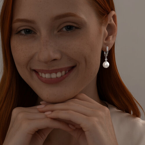 Серьги SOKOLOV - Серебро 925, Жемчуг имитация, Фианит (арт. 94025814)