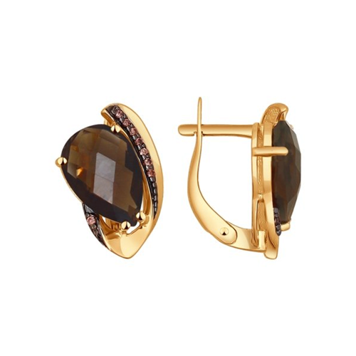 Серьги SOKOLOV - Золото 585, Раухтопаз, Фианит (арт. 724322)